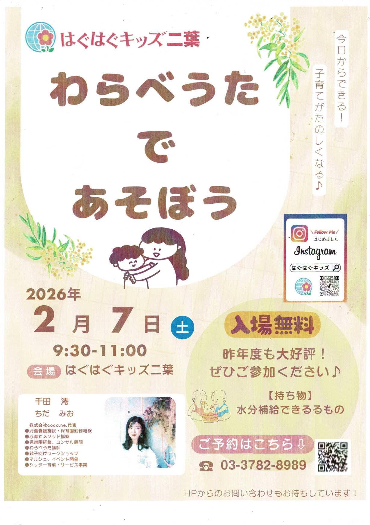 はぐはぐキッズ二葉では地域のご家庭を対象としたイベントを開催します。